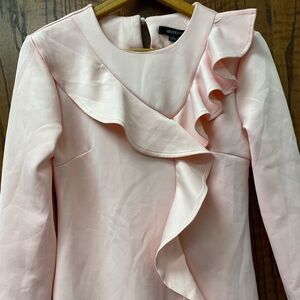 New with tags Haoduoyi pale pink ruffle front long sleeve sheath dress. Size Large, polyester, smooth stretch, scoop neck, mini length, keyhole button back, see pictures for details.