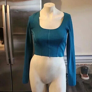 HAPPILY GREY WOMEN'S LONG SLEEVE GREEN SCOOP NECK TOP SIZE M