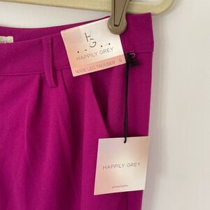 HAPPILY GREY Wide Leg Trouser Pants Womens S-9 Pink Purple Pleated Hem Slits NWT