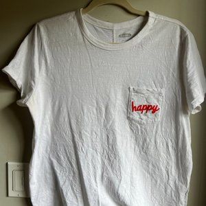 Old Navy white tshirt with happy embroidered in red on pocket. Great condition.