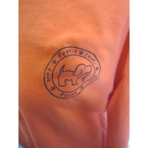 HAPPY HALLOWEEN ORANGE PUPPIE LOVE LONG SLEEVE TEE WITH A CUTE HAUNTED HOUSE ON THE BACK. SIZE LARGE CHEST 40"