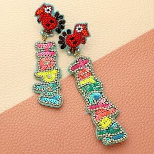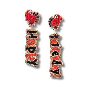 HAPPY TURKEYDAY Thanksgiving Theme Turkey Holiday Sparkle Beaded Earrings