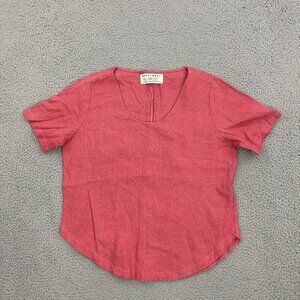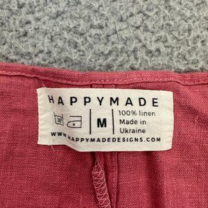 HAPPYMADE Womens Linen Top Medium Lagenlook Short Sleeve Curve Hem