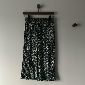 HAPSHO FLORAL MIDI SKIRT SIZE MEDIUM BLACK WITH GREEN AND TAUPE PRINT