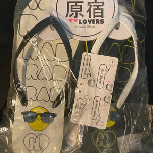 NWT Step into street ready style with these unique flip flops by Hara Juku LOVERS “RAD”. Such a playful pattern and alive with rich color designed by Gwen Stafani. These are for all the HaraJuku Lover fans.