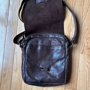 HARBOUR 2ND Leather Marlies Flap Magnetic Crossbody Purse Bag Brown 30” strap