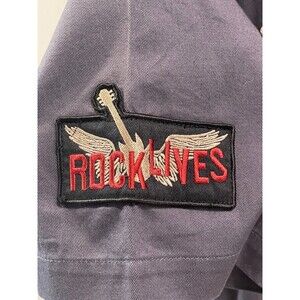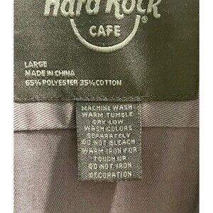 Hard Rock Cafe Biloxi dark gray mechanic shirt with patch detail. Sz L. Some manufactured distressing. 65% polyester, 35% cotton. Dry cleaned but never worn.