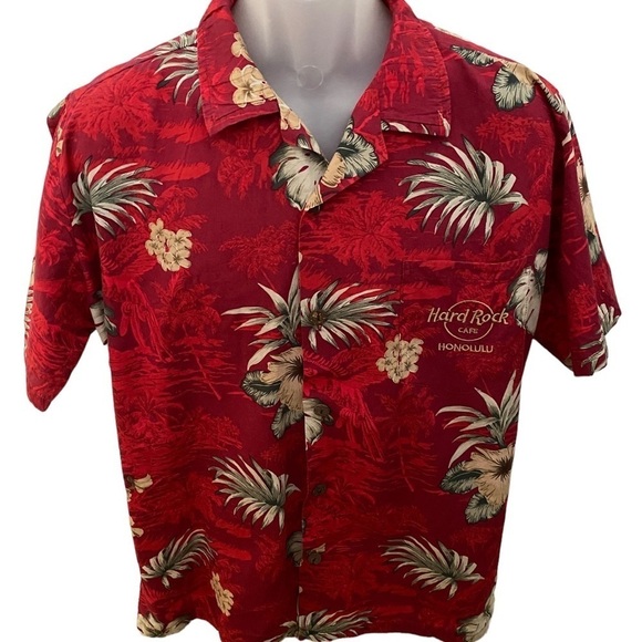 HARD ROCK CAFE Honolulu Aloha Hawaiian Tropical Floral Shirt Men L Large RARE!