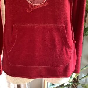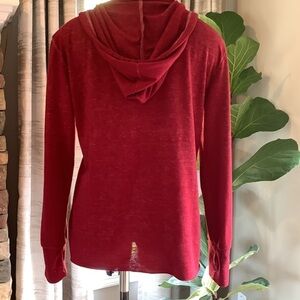 Hard Rock Seattle maroon small lightweight hoodie. Split neck. Front pocket. Raw edge. Drawstring around neck. Does have some wash wear.