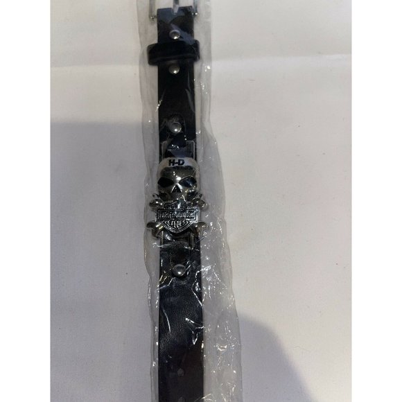 HARLEY DAVIDSON BLACK LEATHER BUCKLE BRACELET W/SILVER SKULL LOGO