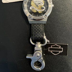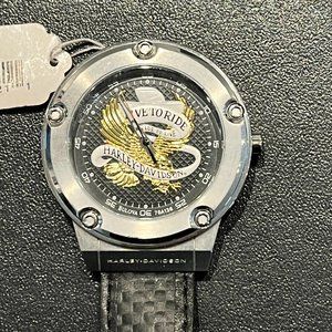 When is the last time you saw this Pocket Watch at a Harley Davidson Dealership? This is a beautiful Pocket Watch that will be cherished forever and passed down to the next generation. The face proudly displays a Golden Eagle, carrying a banner with the classic rider's creed, ''Live to Ride, Ride to Live''. With a leather band, set on a Stainless-Steel case, this classic may bring you a bit of nostalgia every time you pull it out of your pocket. Currently there is NOT a Licensee for watches for Harley Davidson. Grab this one before Harley Davidson Bulova watches are gone forever. Watch is new in excellent condition with a new battery installed before listing. MSRP $185 (DP8)