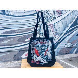 HARLEY DAVIDSON Biker For Life Vintage Tote Bag - Black With Retro Graphic Print
