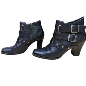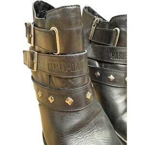 "HARLEY DAVIDSON" Boots SZ 8 Leather VTG Buckles Studded Y2K Bad Girl Biker