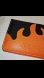 A Harley Davidson canvas wallet, clutch style, with a stitched flame design and two internal compartments, in black and orange.