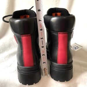 HARLEY DAVIDSON TRESSLER BLACK RED CHUNKY LUG SOLE LEATHER GRUNGE GOTH CORE COMBAT WITCHY WHIMSY GOTH BOOTS SZ 6