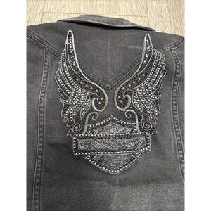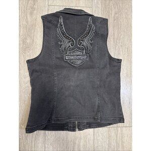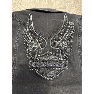 HARLEY DAVIDSON EMBROIDERED WINGED LOGO BLACK FULL ZIP DENIM VEST WOMEN'S SIZE M
