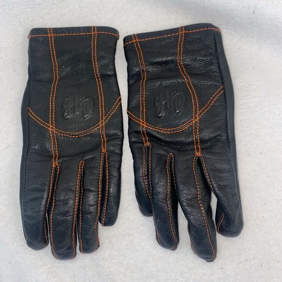 HARLEY DAVIDSON Goatskin Women's Black Leather Motorcycle Riding Gloves Small
