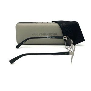 The eyeglasses includes Harley Davidson: Case, Cleaning Cloth