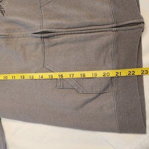 HARLEY DAVIDSON Ladies SZ M, Stand Collar Gray Zip Up Sweat Shirt. Cotton/Polyester. Back Reflective HD Logo, Bottom of back "High Country Harley Davidson", Frederick Colorado. One pocket has extra smaller pocket inside.