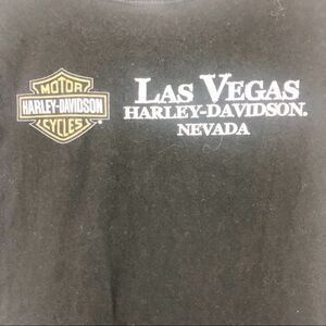 Sleeveless muscle tee. Raw cut arm holes. Awesome Harley Davidson Las Vegas graphics on both sides. Ride to Live. Small spot as shown but it almost adds to the Distressed look. Very cool top.