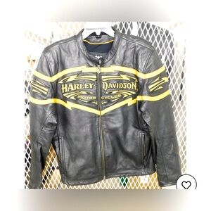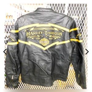 For all Harley lovers, on offer is a collector’s iconic genuine HARLEY DAVIDSON MOTOR CYCLES, An American Legend leather jacket. Large logo across chest and back, zippered, mesh interior with pockets for your essentials.