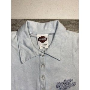 HARLEY DAVIDSON MOTORCYCLES KONA HAWAII LIGHT BLUE S/S POLO SHIRT WOMENS SZ L.