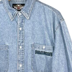 HARLEY DAVIDSON Men’s Vintage Y2K Embroidered Chambray Button up Shirt