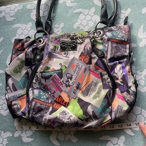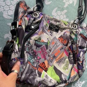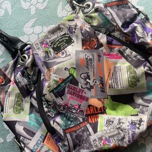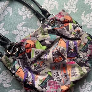 HARLEY DAVIDSON Multicolor Black Leather Top Handle Satchel Motorcycle Graphics