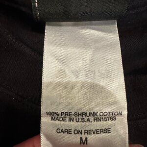 The product is a men's black medium t-shirt with the Harley-Davidson logo, made in the United States. This collectible item features the iconic Harley-Davidson brand, representing American craftsmanship and motorcycle culture. Perfect for fans of Harley-Davidson or those who appreciate quality clothing from a well-known brand with deep roots in American history. This shirt has been tucked away in my dresser for a long time, never worn!