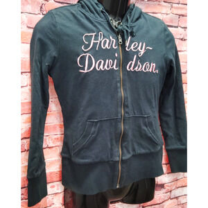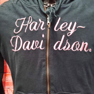 Experience the versatile style of the Harley-Davidson Reversible Women's Hoodie, perfect for those who love to switch up their look. In size small, this hoodie features a full zipper closure, allowing for easy layering and a customizable fit. The reversible design offers two fashionable options: a vibrant floral print and a bold leopard print, each adding a touch of personality to your outfit. Crafted from a soft cotton blend, this knit hoodie ensures comfort and durability. Its reversible feature makes it a practical addition to your wardrobe, suitable for various occasions. The hoodie is a part of the Harley Davidson product line, reflecting the brand's commitment to quality and style for the women who appreciate a unique blend of comfort and attitude.