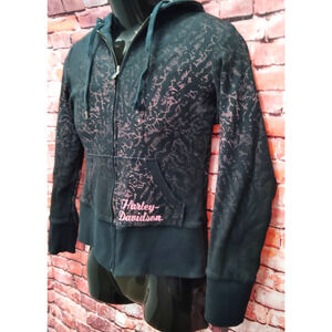 HARLEY DAVIDSON REVERSIBLE WOMENS HOODIE SWEATSHIRT S FLORAL LEOPARD PRINT