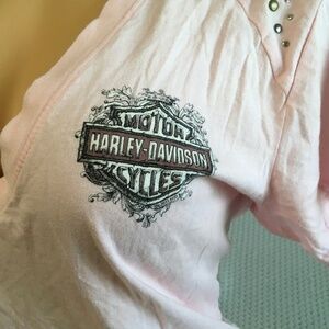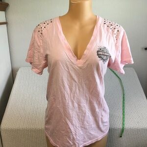 HARLEY DAVIDSON SOFT V-NECK PINK SHIRT SIZE WOMAN XL