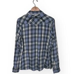 HARLEY DAVIDSON Studded Metallic Plaid Button Up Shirt Motorcycle Hipster Skate