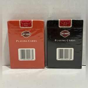 The product is a set of vintage Harley-Davidson playing cards that are new and still sealed. These playing cards likely feature unique designs and images related to the iconic American motorcycle brand, making them a collectible item for both Harley-Davidson enthusiasts and collectors of playing cards. The vintage nature adds to the appeal of the product, providing a nostalgic and classic feel for anyone who appreciates the history and legacy of Harley-Davidson motorcycles.see photos to determine condition new sealed see photos comes as is sold as is. See photos