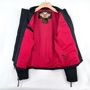 HARLEY DAVIDSON Y2K Embroidered Biker Jacket Sz S Logo Patch Bomber Buckles Zip