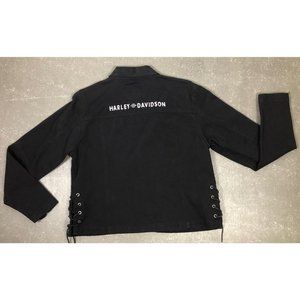 HARLEY Davidson womens black denim jacket sz XL Pockets, Zipper Arms, Embroidery