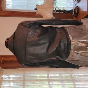 Heavy Leather Harley Davidson riding jacket. Lining and fill 100% polyester. Worn once. Leather is soft and flexible.