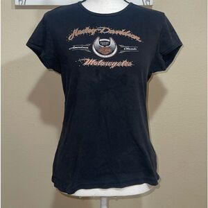 HARLEY-DAVIDSON Ladies Black 105th Anniversary Short Sleeve Tee Shirt Large