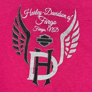 HARLEY-DAVIDSON Women's M Pink V-Neck Short Sleeve Fargo ND Shirt T-Shirt EUC