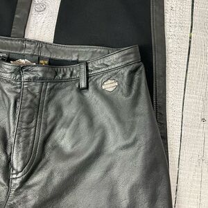 Women’s Harley-Davidson black genuine leather front pants with stretchy back for comfort. EUC Size 12