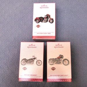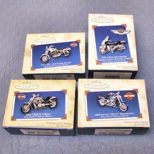 A wonderful complete set of 19 Harley/Hallmark Keepsake Christmas ornaments that I purchased locally at the Hallmark Store. We have taken very good care of them over the years, storing them in a plastic tote between holidays. We have no kids, so all are in excellent condition in original boxes and packaging. I took them out of the boxes to carefully inspect each one and see no issues of any kind. They go from the first in the series which is a Heritage Springer to the last in the series which is a 1968 Electra Glide. Also included is the 2003 100th Anniversary Ultra Classic Electra Glide. A great addition to your Harley Tree this year. They discontinued the series after 2017, and are a super, hard to find Harley collectible. Happy H-D Christmas! These are beautifully made, hand crafted die-cast metal, and artist designed!
