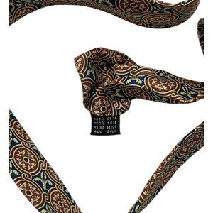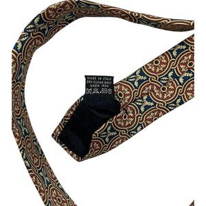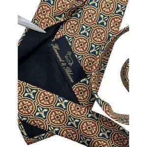 HARMONT & BLANE Men's 100% Silk Necktie LUXURY Tie Blue Red Geometric W:4" EUC