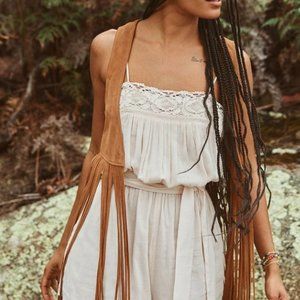 The Harmony Romper is a sweet little addition to any summer wardrobe. We are loving the delicate neckline and lace trims with a single shell button fastening across the center back. Wear under our Joni Suede Vest or statement robe for the ultimate Spell layered look.