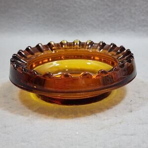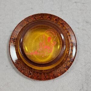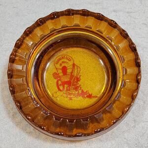 HAROLD'S CLUB Or Bust! Reno Advert Round Ruffled Pedestal Amber Glass Ashtray 4" Diameter