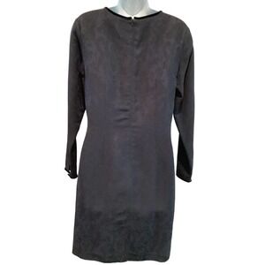 HAROLD'S VINTAGE DARK NAVY SILK/WOOL JACQUARD DRESS WITH VELVET TRIM 4