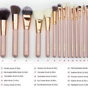 Ready to get beautified? Our signature pink brush set includes 15 professional makeup brushes, perfect for either the beginner or experienced makeup lover. Our brushes feature premium soft and silky cruelty-free bristles made from a combo of goat hair & synthetic fibers.