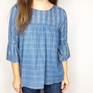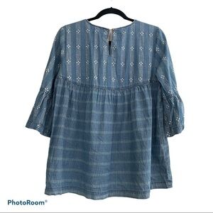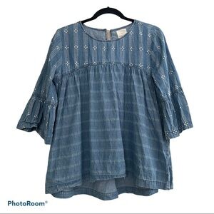 HARPER Chambray Bell Sleeve Babydoll Top | M