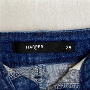 Harper Sz 1 Shorts Denim Cutoffs, 25” Waist Distressed Needlepoint Front Pockets. These pre-owned, unique cutoff shorts, with needlepoint front peel-a-boo pockets are cute to wear anywhere! Approx 25” waist. Approx 2” inseam. 98%. Cotton 2% Lycra Spandex. PA 42 EP