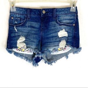 HARPER Exposed Needlepoint Pocket Denim SHORTS Cutoffs 25” Waist Distressed Cute