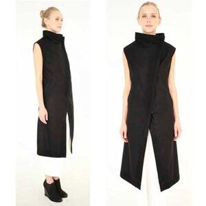 HARPUTS OWN Women's Black Asymmetrical COUTURE SQUARE Wool VEST Sleeveless Coat